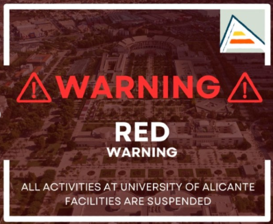 The UA activates the EMERGENCY LEVEL RED EFFECTIVE 10/10/2025: GENERAL SUSPENSION OF IN-PERSON UNIVERSITY ACTIVITY During the validity of this emergency situation, the following measures are established until further notice: